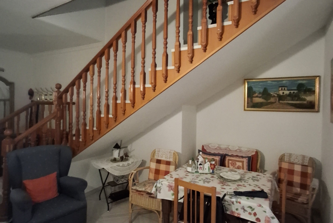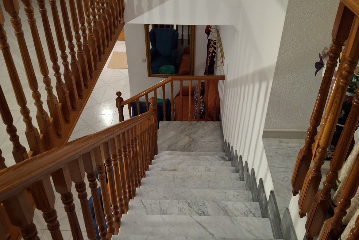 En la planta baja entras a un amplio recibidor el cual se distribuye todas las habitaciones de la planta baja, dormitorio , salón, salita (despacho), cocina equipada con acceso a un patio cubierto, cuarto de baño con ducha.