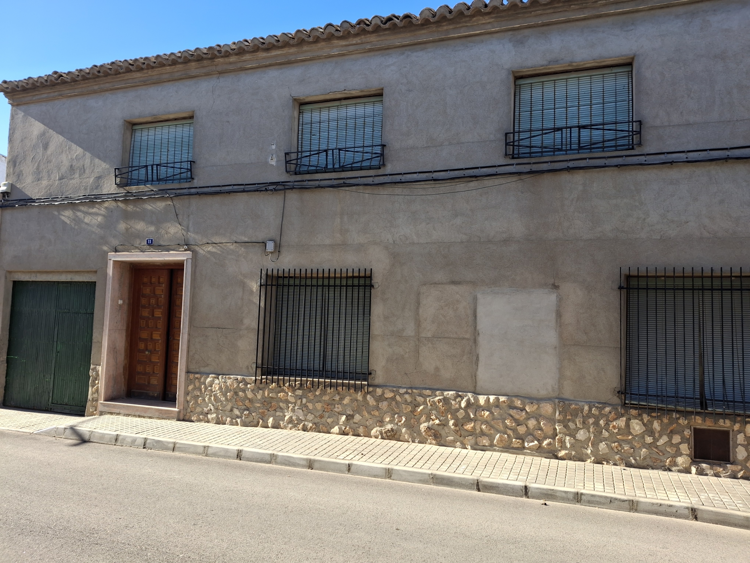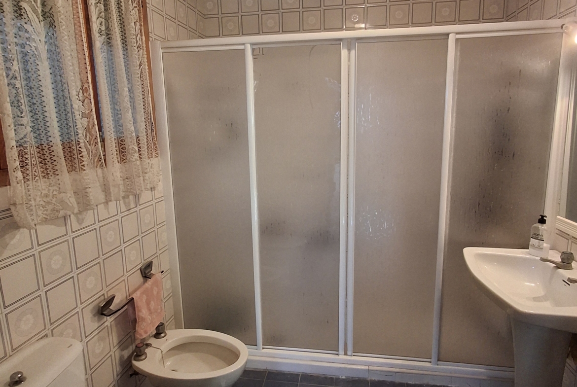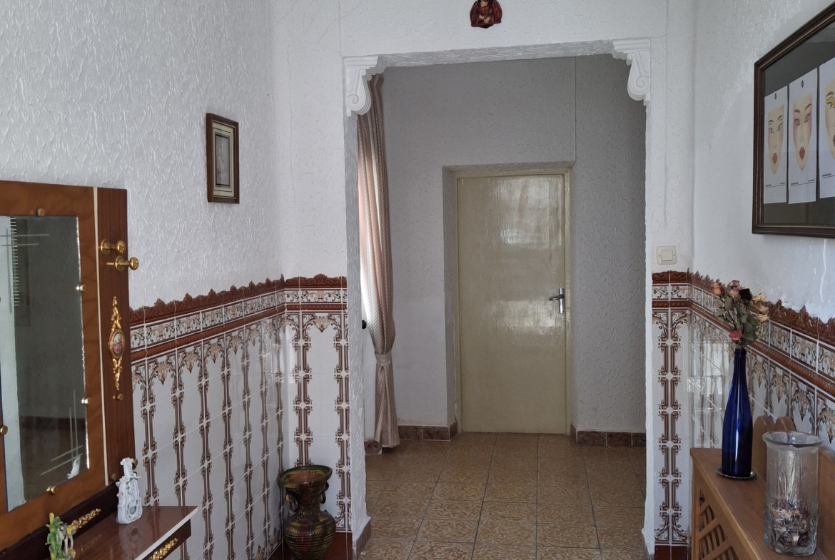 La planta baja de la casa consta; un amplio distribuidor el cual se comunica con todas las estancias de la casa, 5 habitaciones, salón, cocina, cuarto de baño, al fondo de la vivienda hay un porche semicubierto mas dos habitaciones de trastero y un amplio patio (cochera) todo se comunica.