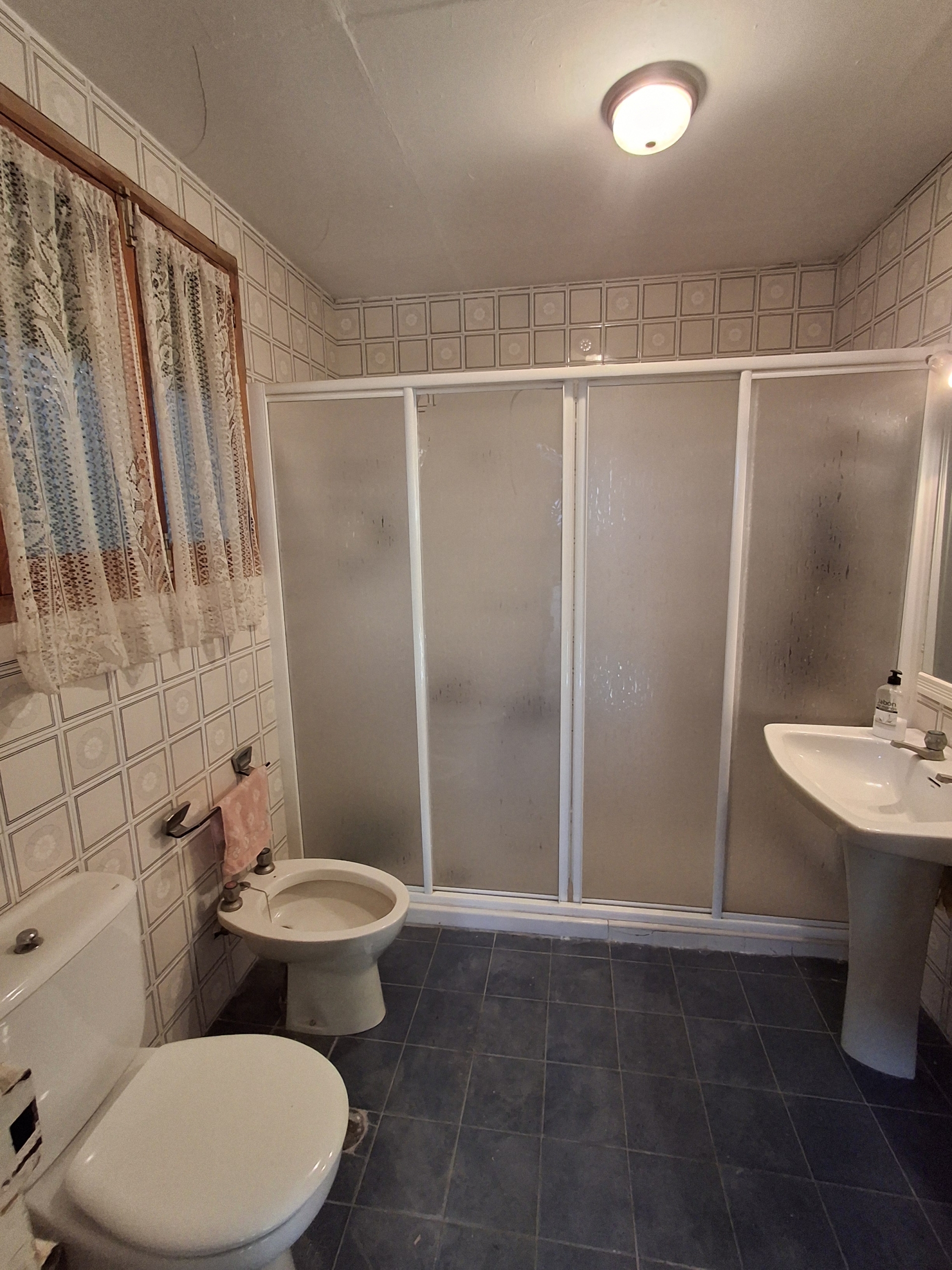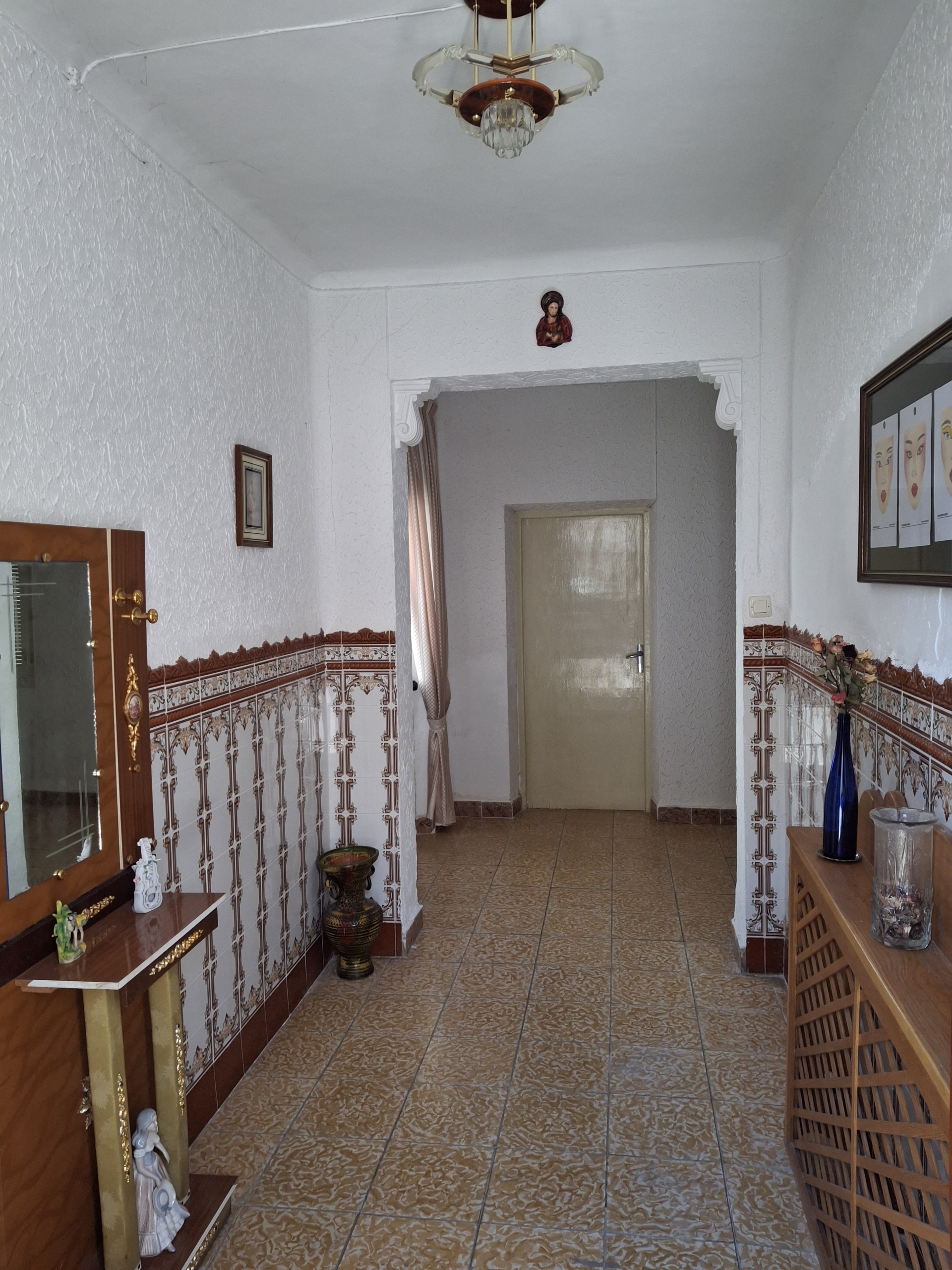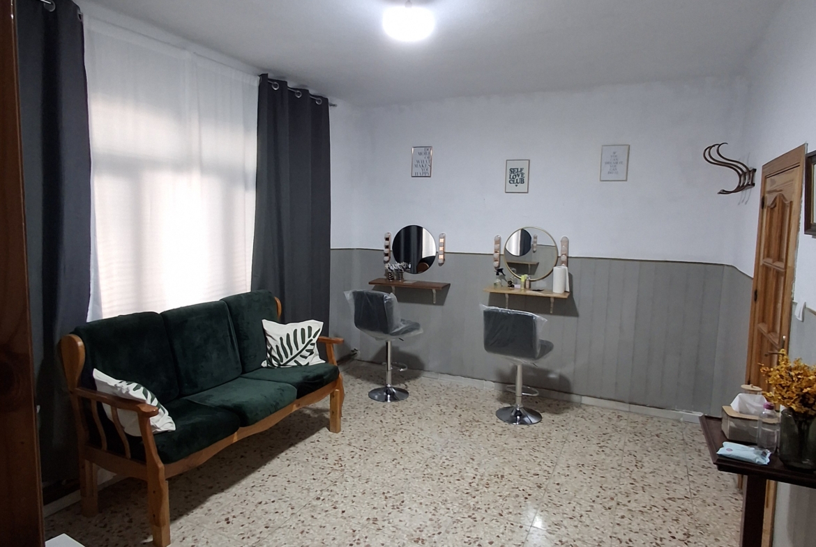 La planta baja de la casa consta; un amplio distribuidor el cual se comunica con todas las estancias de la casa, 5 habitaciones, salón, cocina, cuarto de baño, al fondo de la vivienda hay un porche semicubierto mas dos habitaciones de trastero y un amplio patio (cochera) todo se comunica.