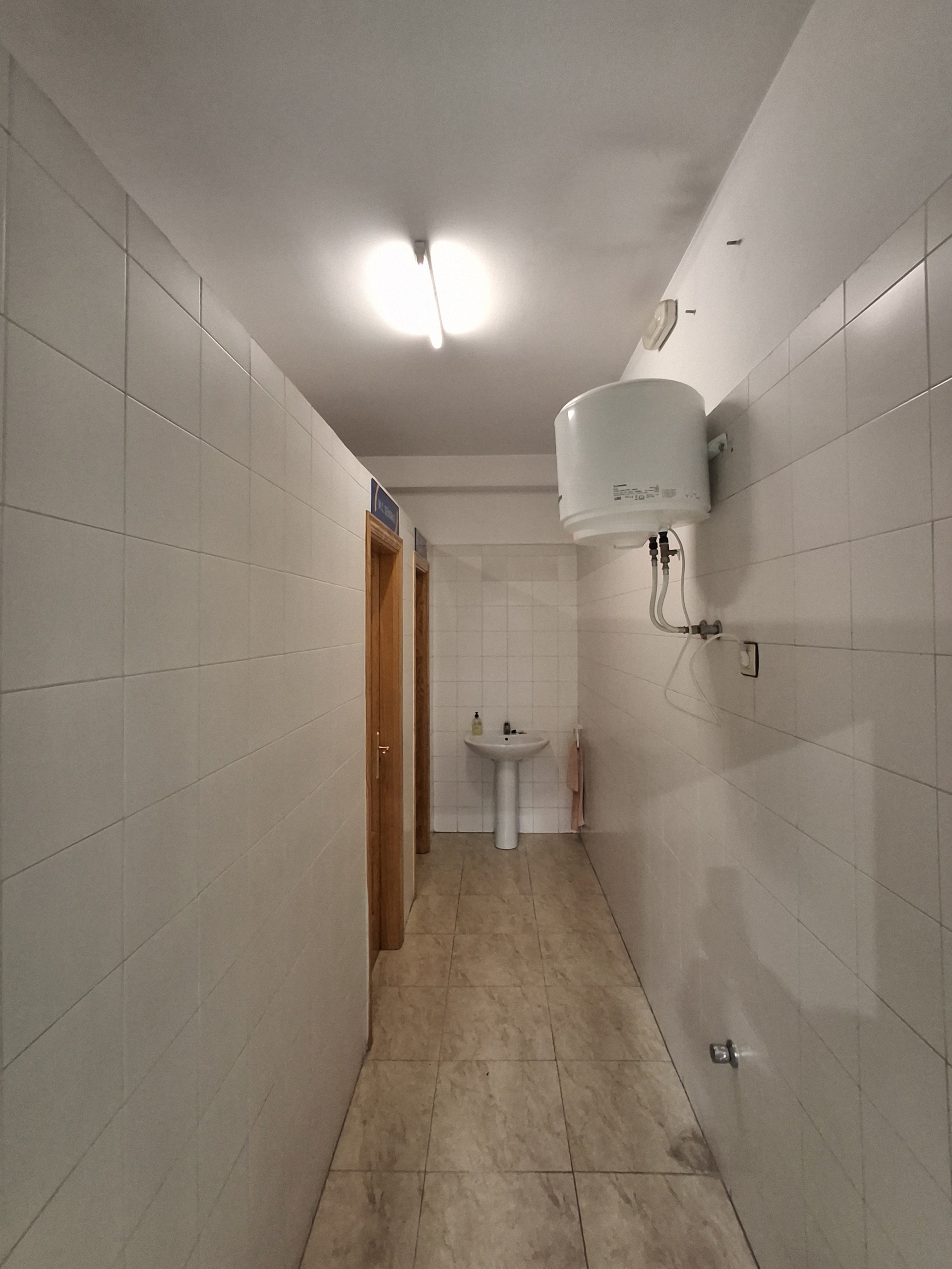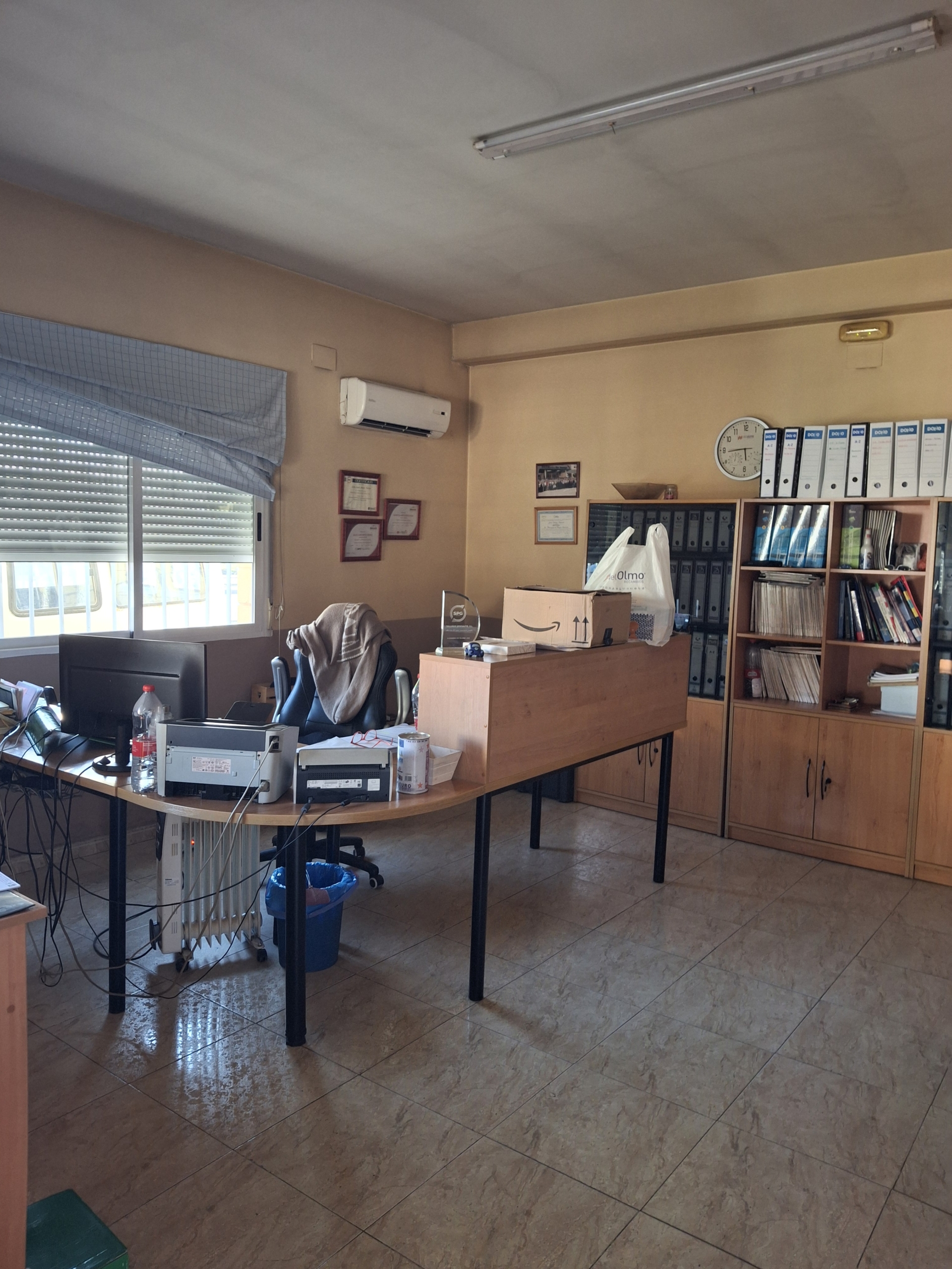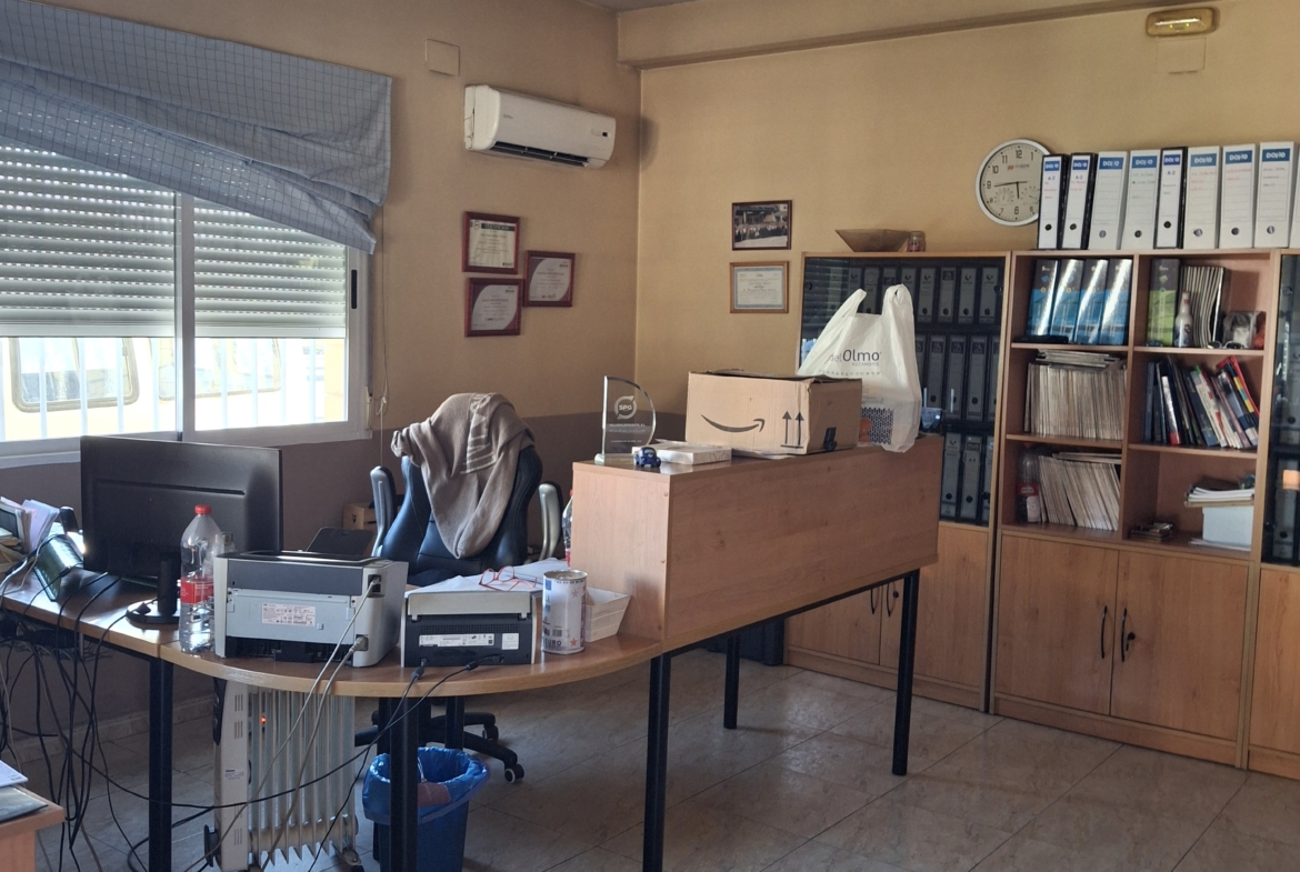 En el interior de la nave esta en varias estancias de trabajo, oficina, sala de espera, aseo y vestuario y almacén de repuestos