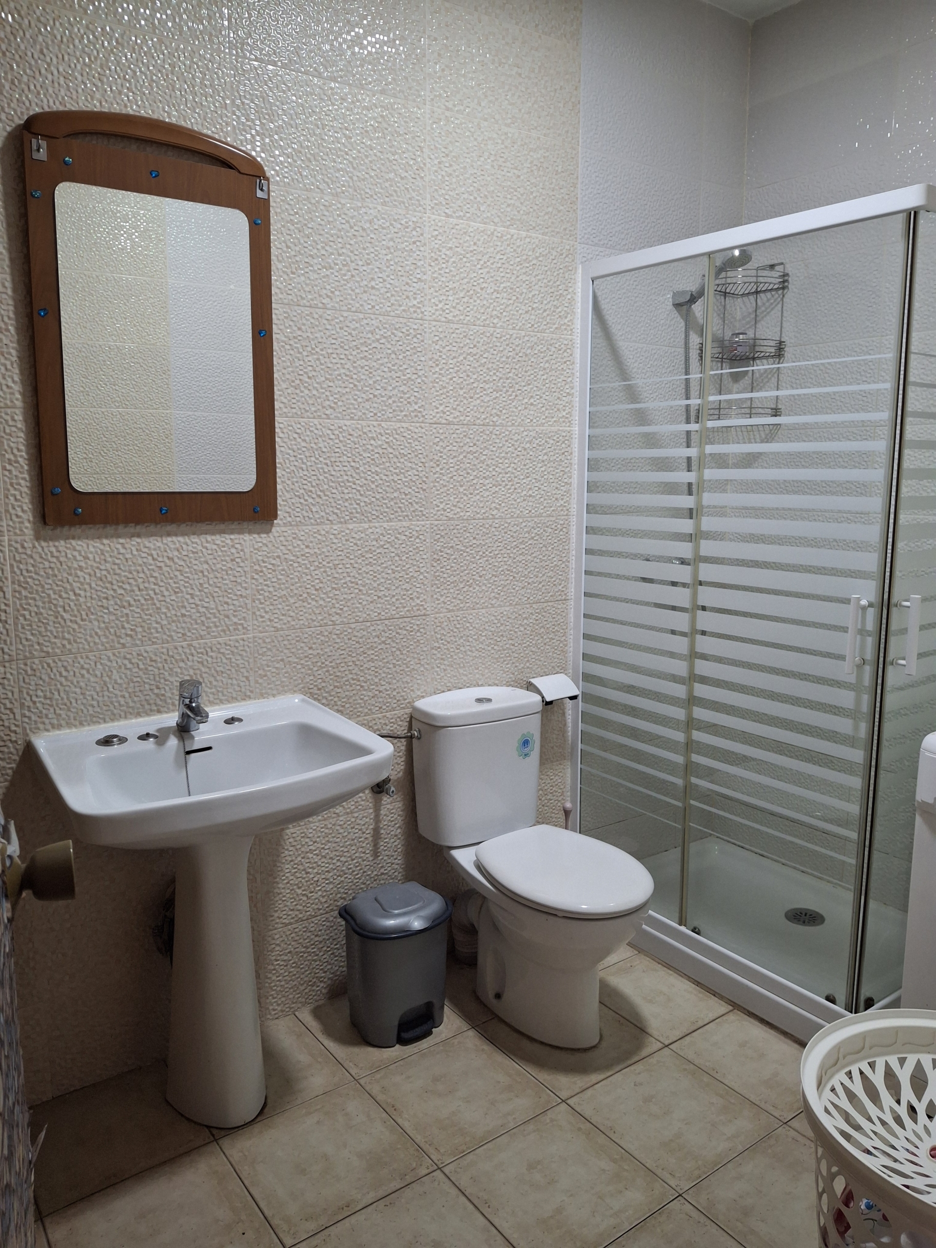 El piso esta ubicado en 1º planta del edificio, consta de tres dormitorios, cocina amueblada, salón, cuarto de baño reformado, hall donde hay un amplio armario empotrado y un balcón trasero donde esta ubicado la caldera.